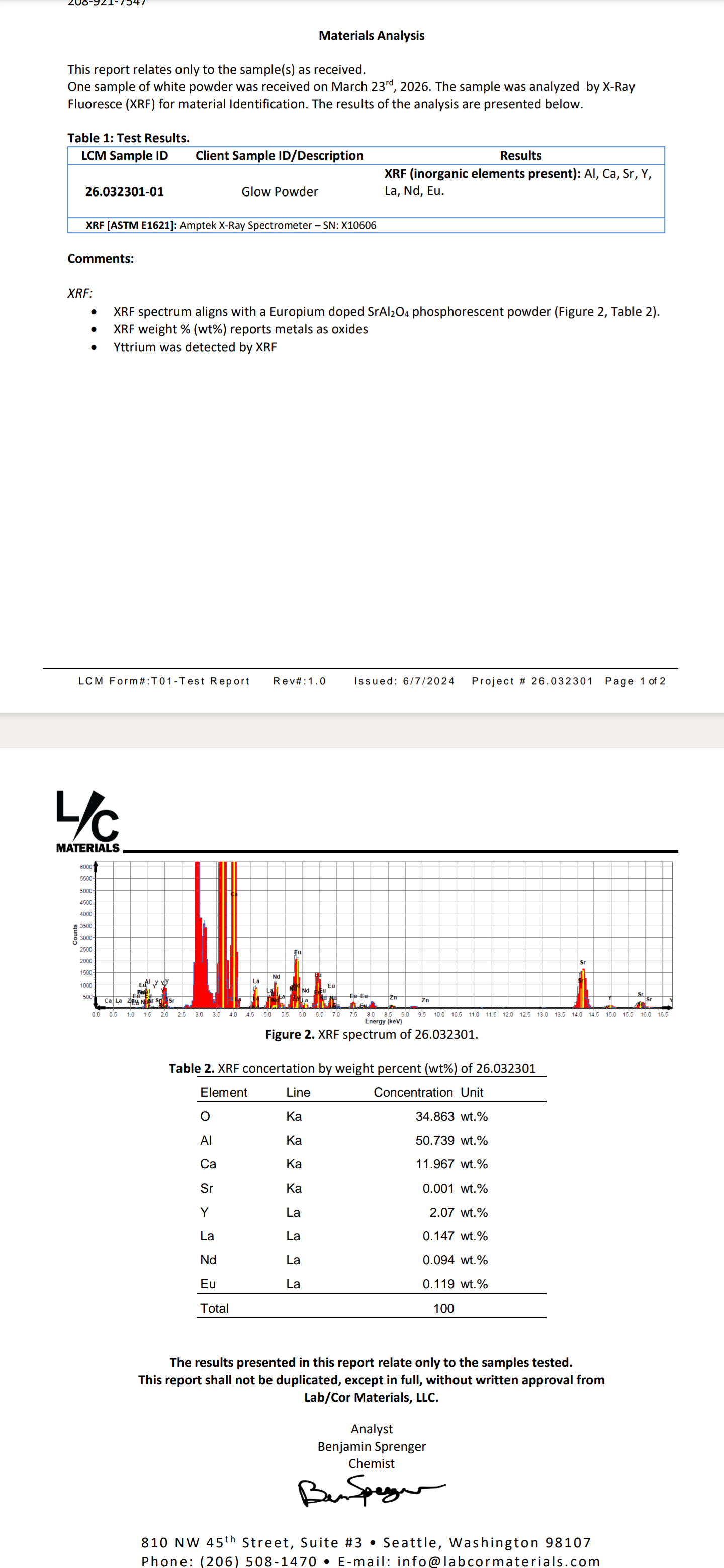 19:03, 8 April 2026 ID 26 032301.png (file) 543 KB Violet (talk | contribs) Lab/Cor test on sample ID 26.032301 Gloeffex purple sample, which is an unmixed purple, still showing yttrium in XRF result. 1
